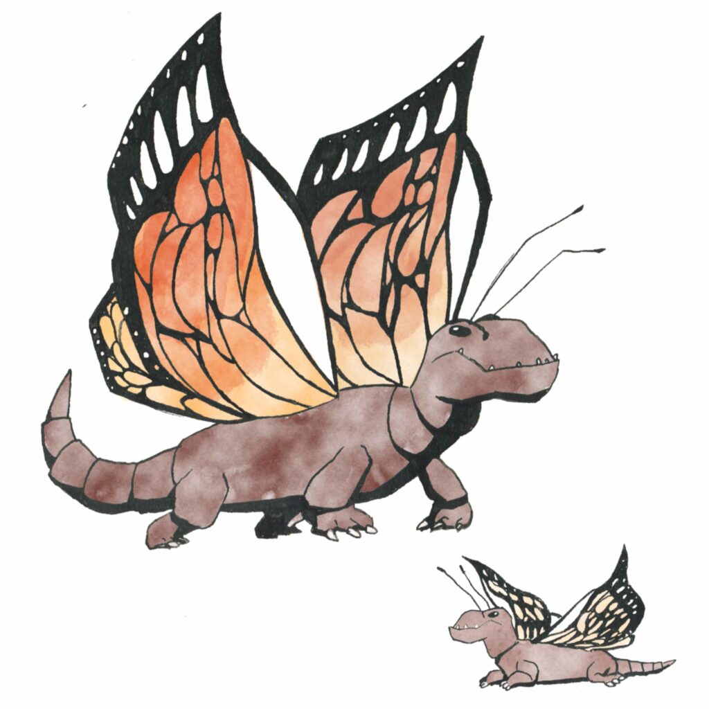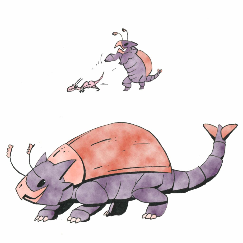 Série de créatures préhistoriques hybrides. Tracé à l’encre de chine, couleur numérique.